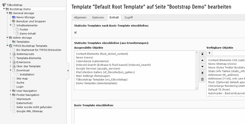Schritt 3: Anlegen der Seitenstruktur, Templates, Domänen-Einträge, Ordner, ... und Konstanten einstellen.
